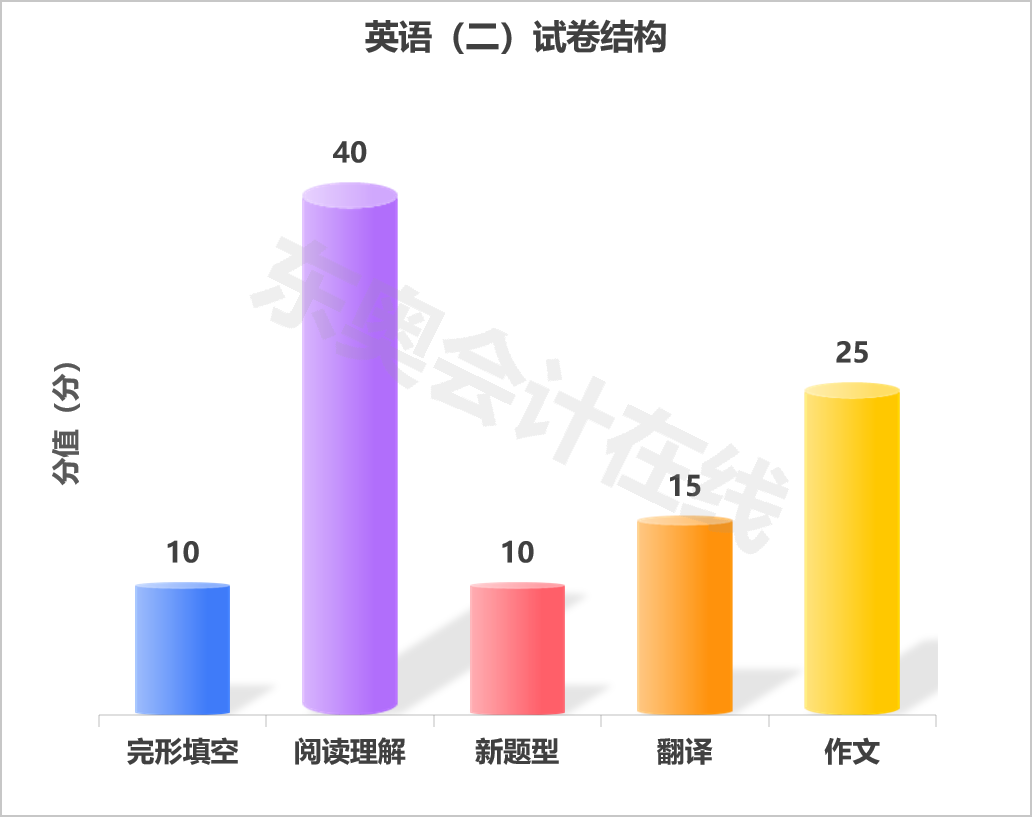 上面是非全日制研究生考試英語的題型(xing)分值(zhi)占比,我們一(yi)眼(yan)就能看出,“閱讀理(li)解”分數最(zui)高,這也是最(zui)能拉開(kai)分數差距(ju)的(de),加上(shang)“作文(wen)”,這兩(liang)道(dao)題就65分了。